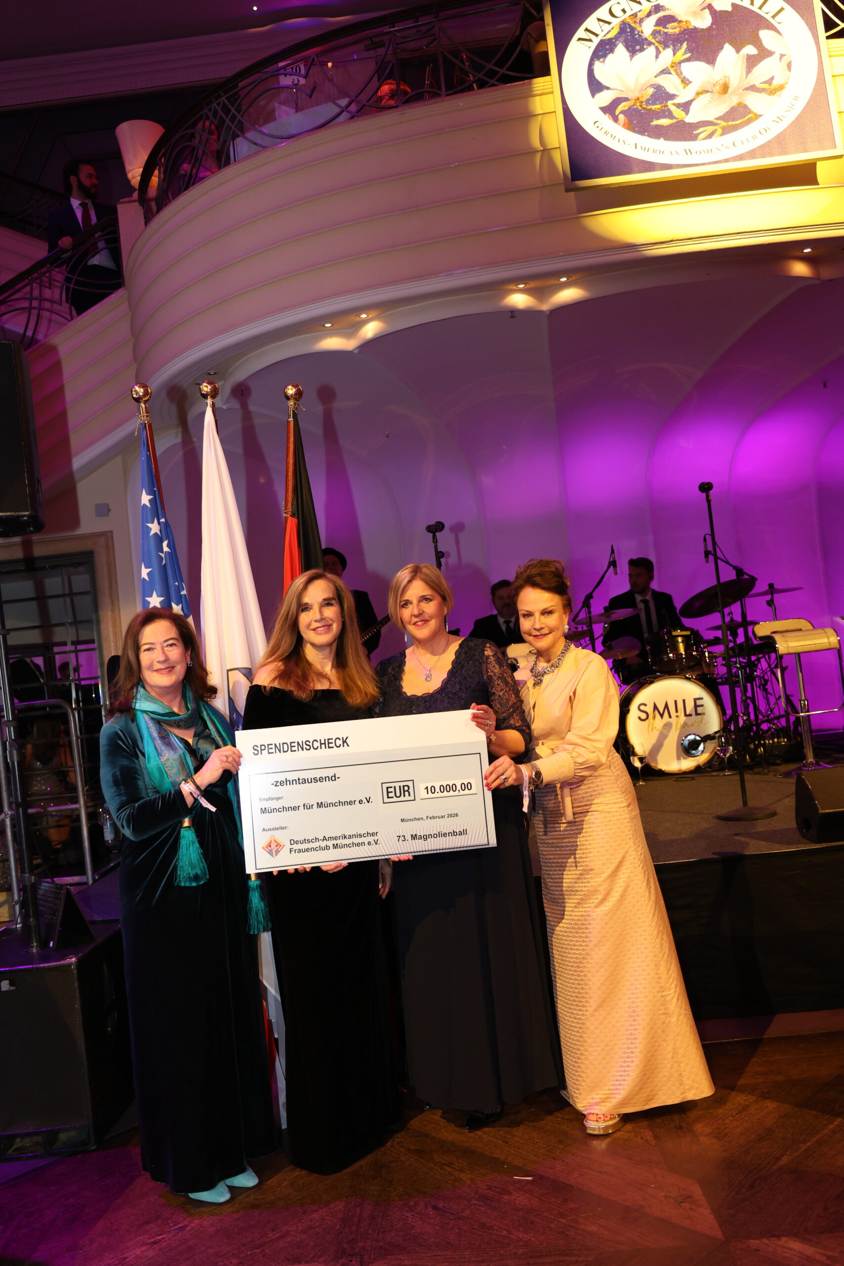 Madlen Stephan, Ilona Gross, and Claudia Sautter accepted this year’s donation check on behalf of the charitable organization “Münchner für Münchner” (“Munich Residents for Munich Residents”). Their mission is to make life brighter for those less fortunate—through individual assistance, support for projects, and shared community activities.
